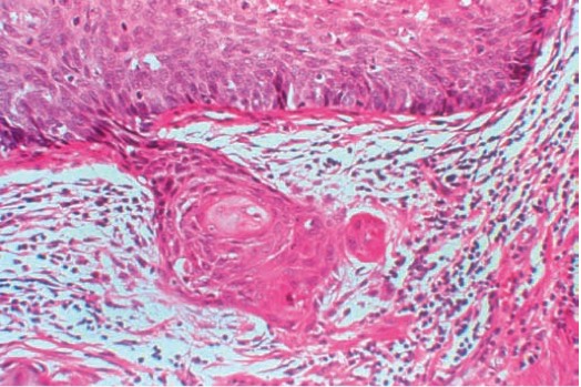 1022. Изменениям, обнаруженным у 33-летней женщины при биопсии шейки матки, наиболее подходит диагноз