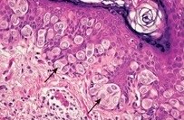 1760. Представлен биоптат незудящего красного, покрытого коркой образования вульвы пациентки 62 лет, часть клеток образования положительны на окраску на муцин. локальное лечение с помощью гидрокортизона неэффективно. диагнозом является