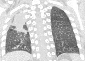 1934. У пациента 3 лет с диагнозом «острый лимфобластный лейкоз» на фоне полихимиотерапии появилась лихорадка, была выполнена компьютерная томография грудной клетки, рентгенологическая картина соответствует