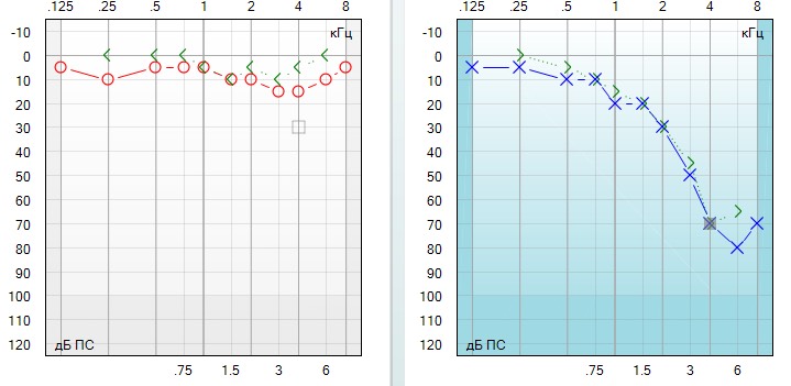 1831. На аудиограмме имеются признаки тугоухости