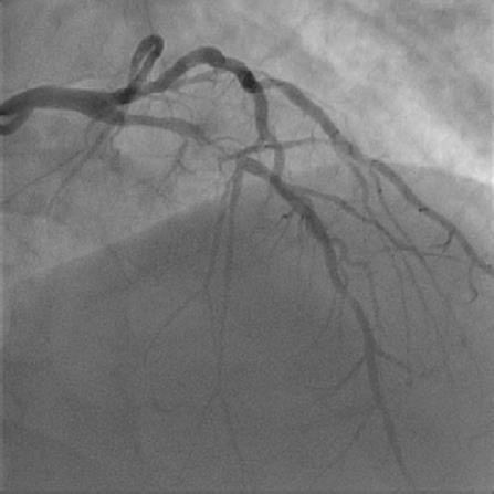 1477. Пациент в возрасте 57 лет подан в рентгеноперационную с острым инфарктом миокарда по передней стенке. данные коронарографии представлены на рисунке
