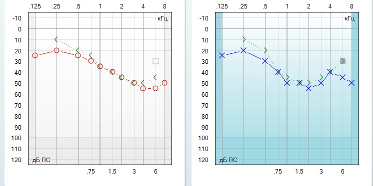 359. На аудиограмме имеются признаки тугоухости