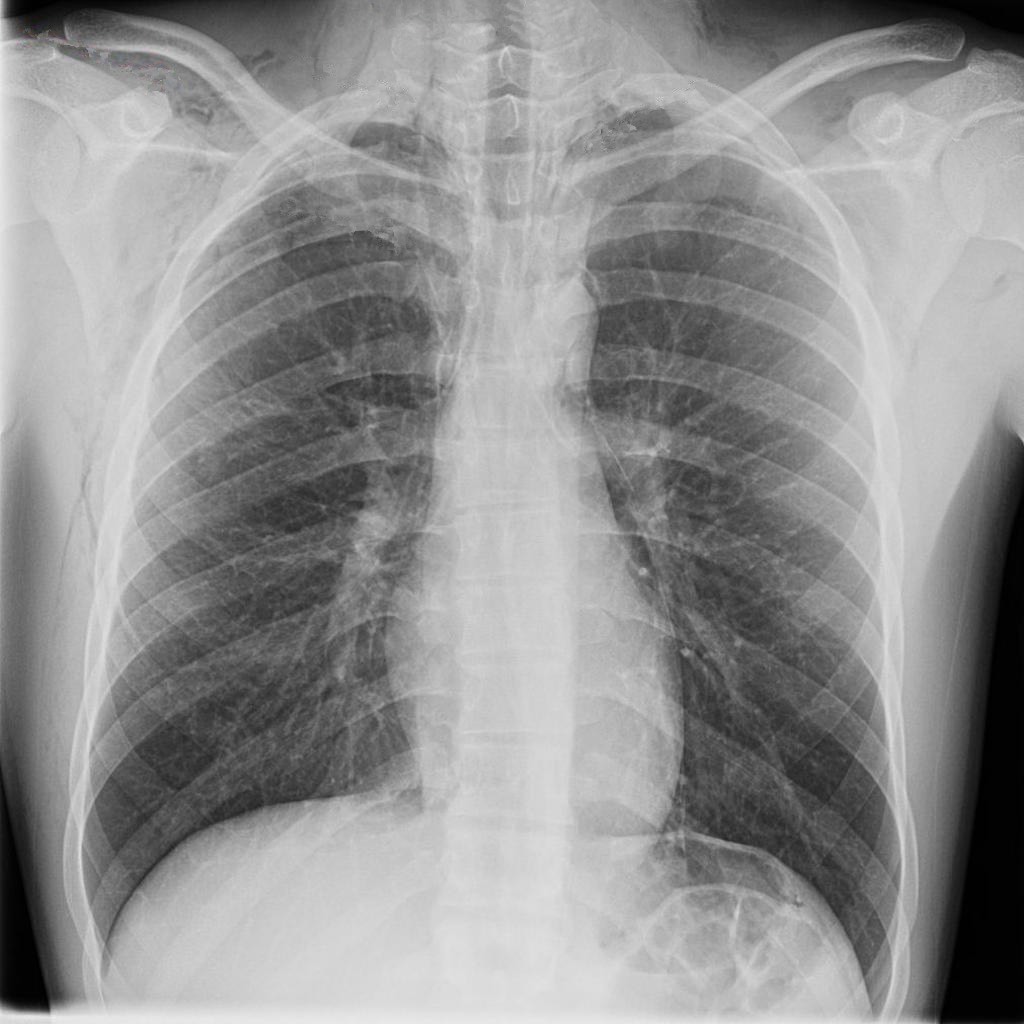 2849. Учитывая представленные на рентгенограмме органов грудной клетки данные, основным объективным признаком спонтанного пневмомедиастинума в данном случае является