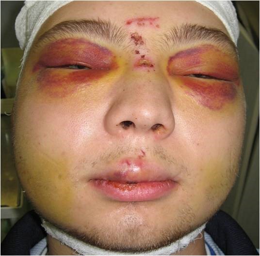 2300. На рисунке у пациента с сочетанной черепно-челюстно-лицевой травмой представлен симптом