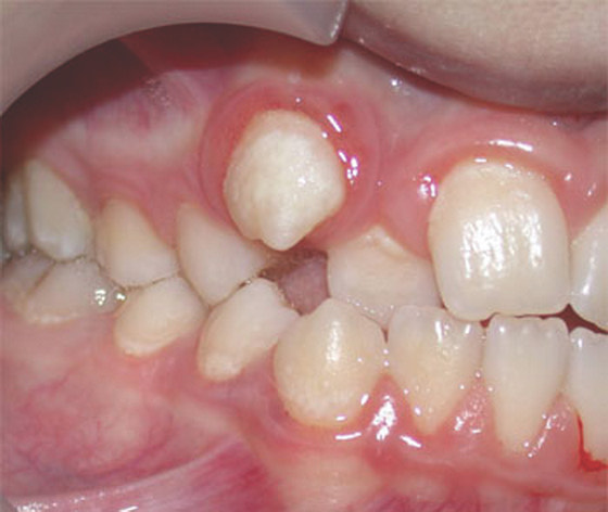 1439. К аномалии положения 1.3 зуба относят