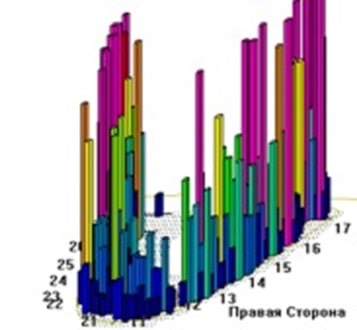 54. Окклюзиограмма (3-х мерный вид) автоматизированной системы регистрации окклюзии t-scan iii иллюстрирует