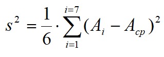 811. Дисперсия s2 экспериментальной выборки n = 7 измеренных значений ai как второй важнейший статистический параметр, вычисляемый на втором шаге обработки как