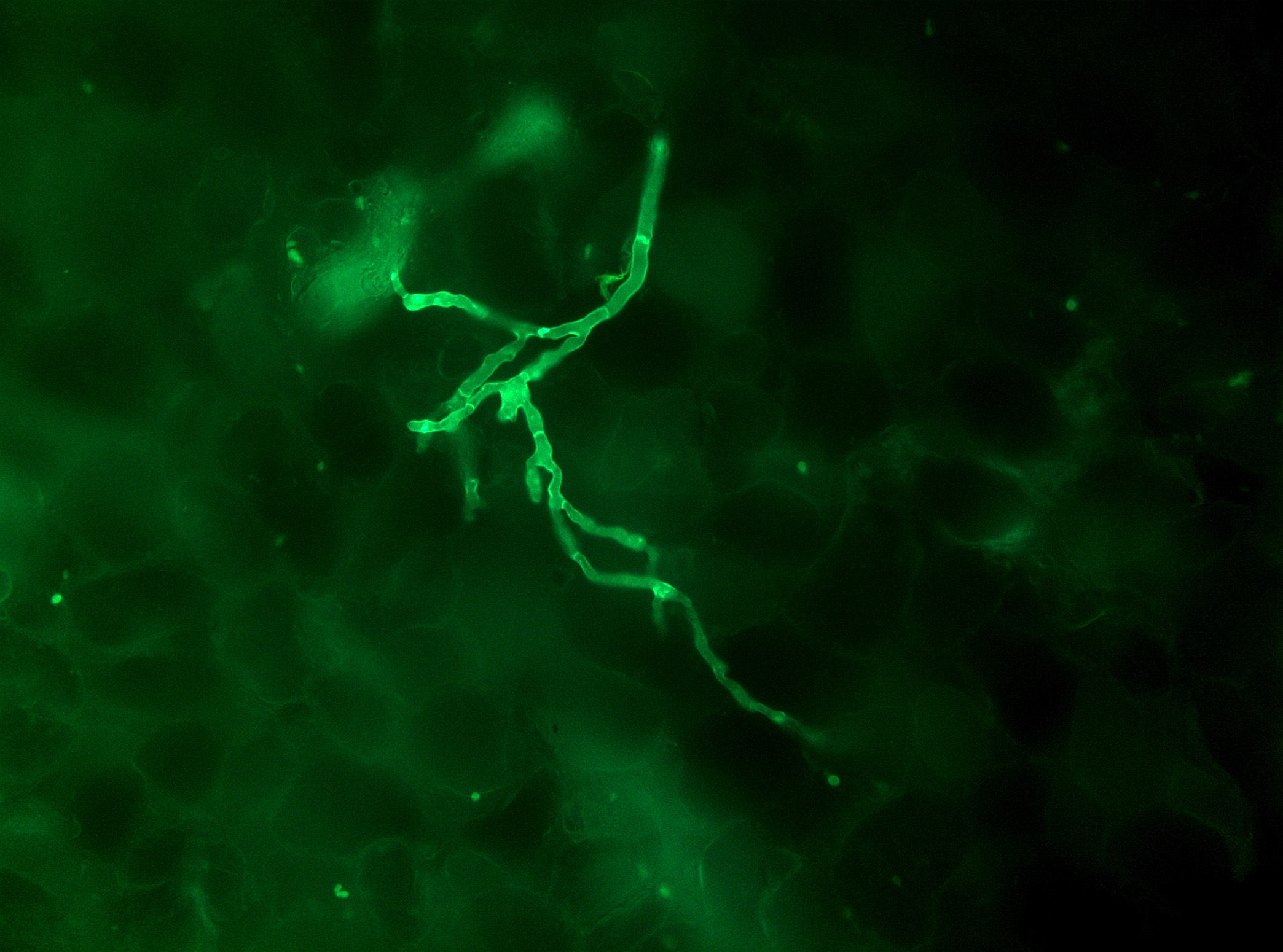 2016. Люминесцентно-микроскопическое исследование мазка из наружного слухового прохода позволило выявить элементы