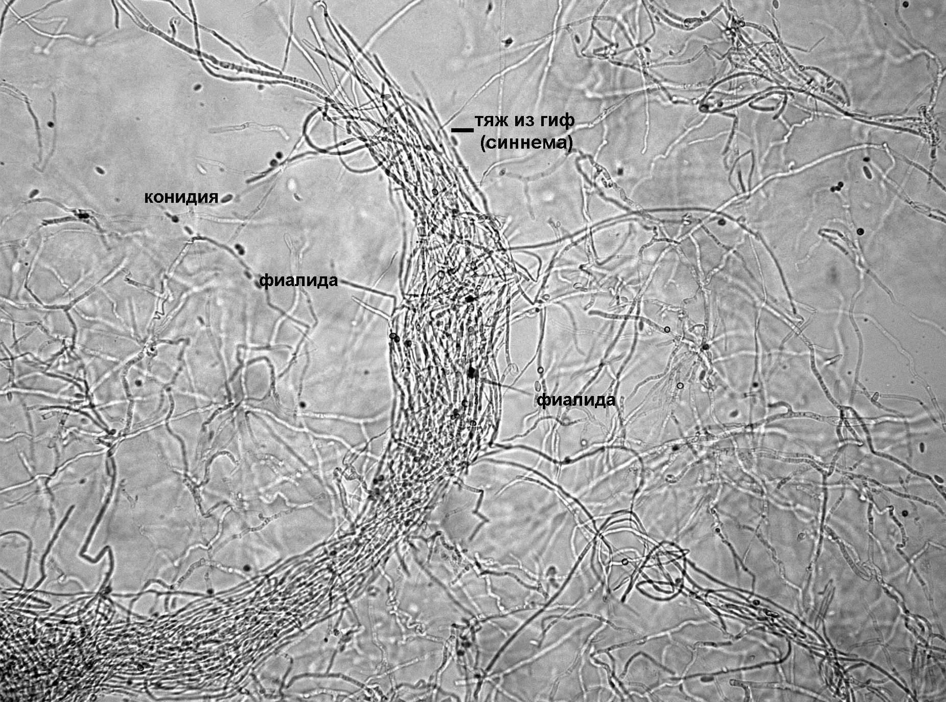 2017. На микроснимке-схеме видны элементы строения мицелиального гриба из рода