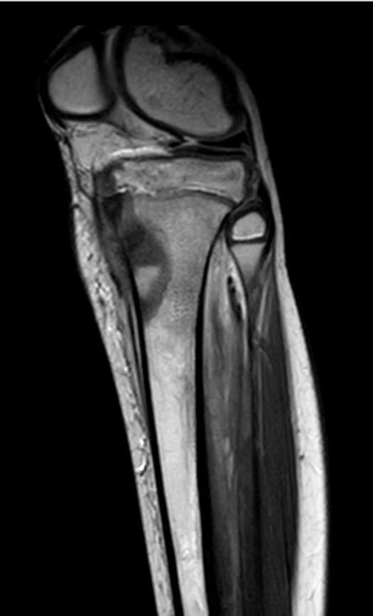 1331. Мальчику 14 лет с жалобами на периодические боли в верхней трети правой голени и нарушением походки в виде хромоты на правую ногу, выполнена магнитно-резонансная томография, заболеванием, которое может соответствовать клинико-рентгенологической картине, считают _____ проксимального отдела _____ кости